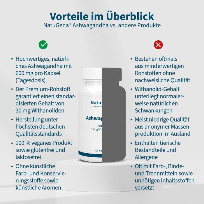 - Frei von Withaferin A: durch ausschließliche Nutzung der Wurzel wird das Withaferin A vermieden